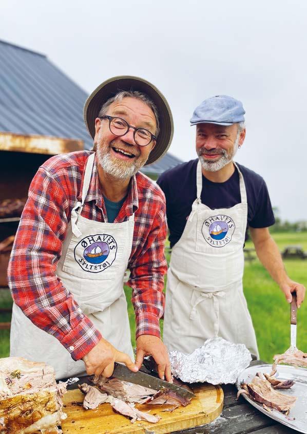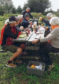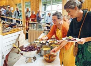 Der bliver plantet, luget og hygget, når medlemmerne af Aarø haven mødes. Medlemmerne er i alderen 20-70 år. Her er det foto fra fællesspisningen ved havens rejsegilde.