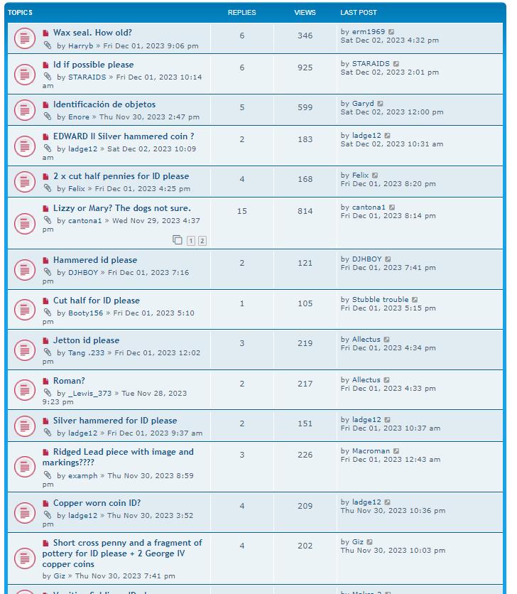 Often within a sub-forum entitled ‘Finds Identification’, a thread starter will post an image of an artefact they have found whilst detecting. From this, individuals will post their thoughts on the find, starting a discussion about the object. Users have the opportunity here to talk about their own expertise on finds, as well as discussing their experiences of detecting as a wider hobby. These discussions can then sprout further topics, and then the forum thread can deviate organically. This process of deviation references the ‘concentric rings of archives’ that De Kosnik appreciates. What is produced is a repertoire of expertise and information from a variety of knowledgeable members.