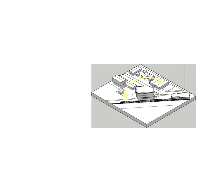 I start my journey by reaching the site and seeing the available ways to go. I choose to enter the site through the green space. The most prominent part in my vision is the lunch space.