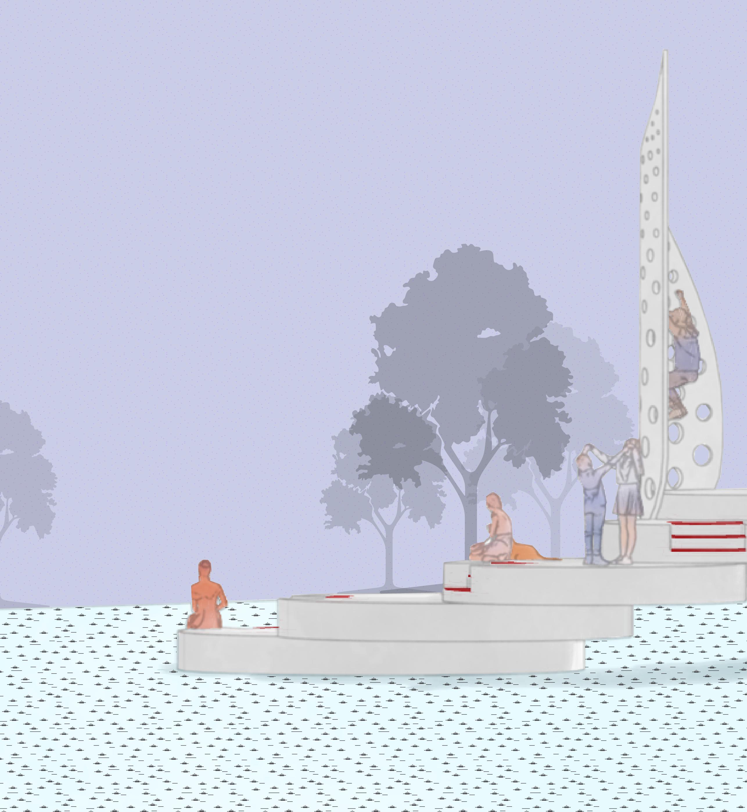 The architectural folly located in Buford M. Watson Jr. Park is a sculptural intervention designed to evoke beauty, mystery, and contemplation while subtly connecting to the Kansas River through its form, materiality, and spatial experience. Inspired by the river’s movement, the folly integrates natural light, shadow play, and framed views,