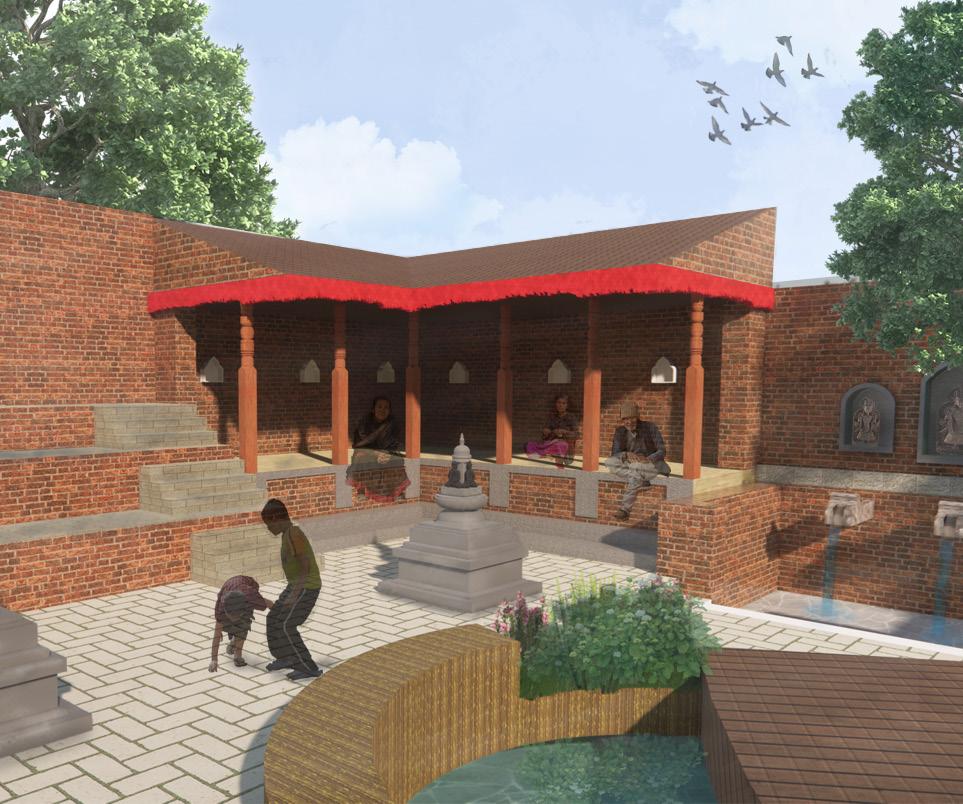 THE CORE PRINCIPLE OF THE DESIGN REVOLVES AROUND THE CONCEPT OF “CONVERGENT OPEN SPACES”.THIS SIGNIFIES THE INTENSIONAL FUSION OF NEPALESE TRADITIONAL ARCHITECTURE, SUCH AS PATI PAUWA AND DHUNGEDHARA, CREATING INTERACTIVE SPACES TAILORED FOR THE LOCAL ELDERLY, SIMULTANEOULY INCORPORATING A GREEN SPACE DEDICATED TO CHILDREN’S PLAY ACTIVITIES, CONTRIBUTING TO THE PARK’S OVERALL SUSTAINABILITY. THE UNDERLYTING OBJECTIVE OF THE DESIGN IS INCLUSIVITY, CATERING INDIVIDUALS OF ALL AGE GROUPS.