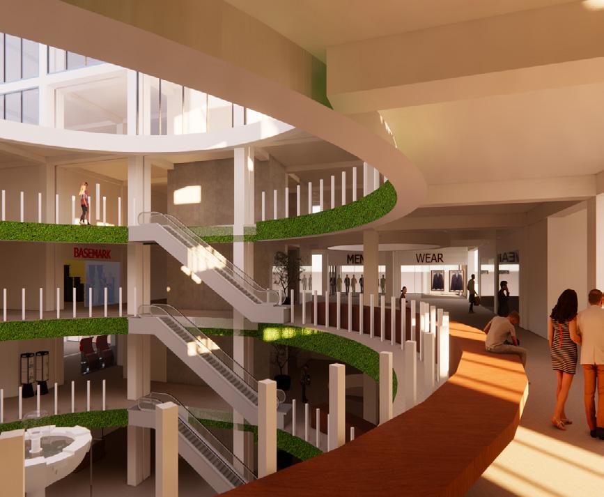 THE CENTRAL,TRIPLE HEIGHT VOID SERVES AS THE PRIMARY SOURCE OF NATURAL ILLUMINATION WITHIN THE BUILDING. THIS OPENNESS FACILITATES CIRCULATION AND CONNECTIVITY THROUGHOUT THE BUILDING, EHANCING BOTH AESTHETICS AND FUCTIONALITY.
