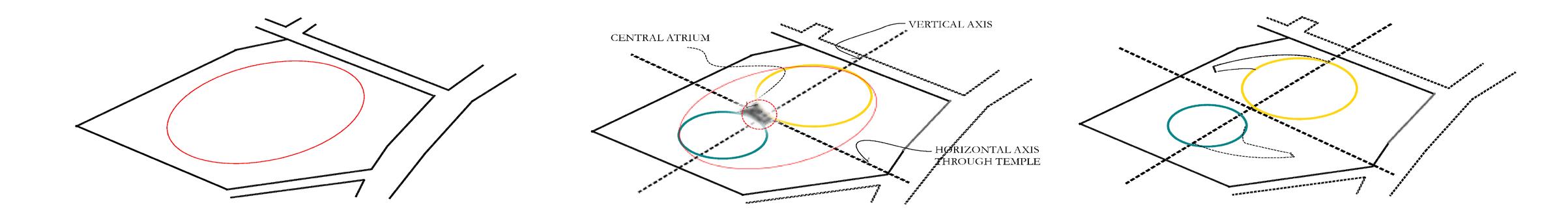 A DIAGONAL AXIS FROM PATAN DHOKA AND A HORIZONTAL AXIS ON THE SITE IS CONSIDERED