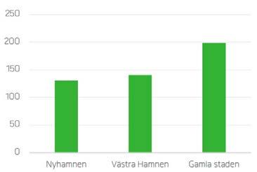 Dall’analisi condotta sull’area di Nyhamnen si rileva che la densità abitativa sarà leggermente superiore a 350 persone per ettaro, valore analogo a quello riscontrato nella Città Vecchia e in linea con le linee guida di UN Habitat corrispondente a 150 persone per ettaro.