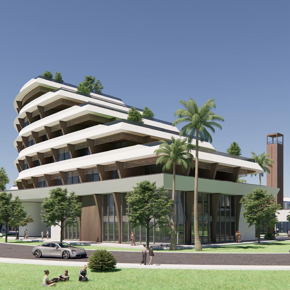 The LUX Resort, spanning a total buildable area of 6,100 m2, serves as a prominent landmark on the eastern edge of the masterplan. The design concept emphasizes elegance and luxury, offereing a refined experience for both the local community and hotel guests. Vertical gardens and landscaped terraces not only enhance the aesthetic appeal but also promote sustainability, blending natural elements with modern architecture to create a harmonious and inviting environment.