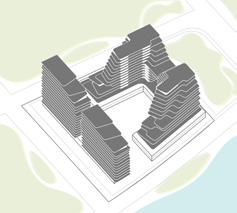 Adding terraces and connect bridges between the four building blocks to increase private and public spaces.