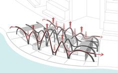 Layering the roof to introduce the soundwave concept and reducing the rigidity of the pavilion.