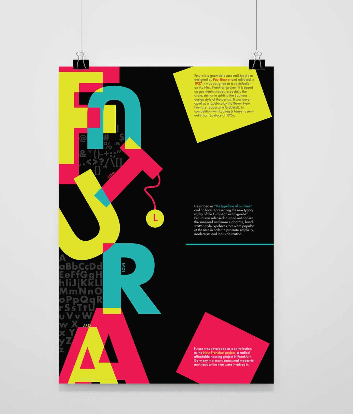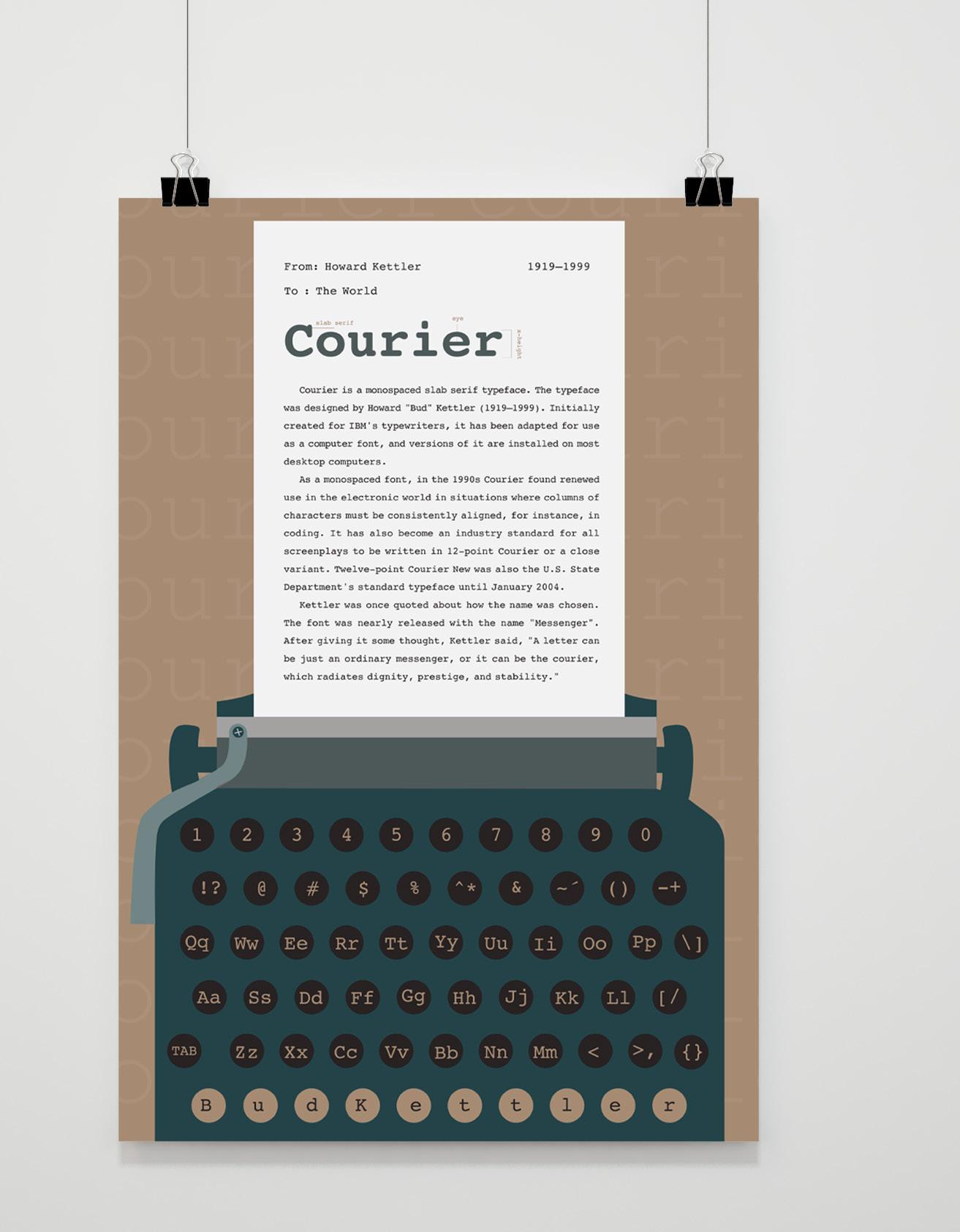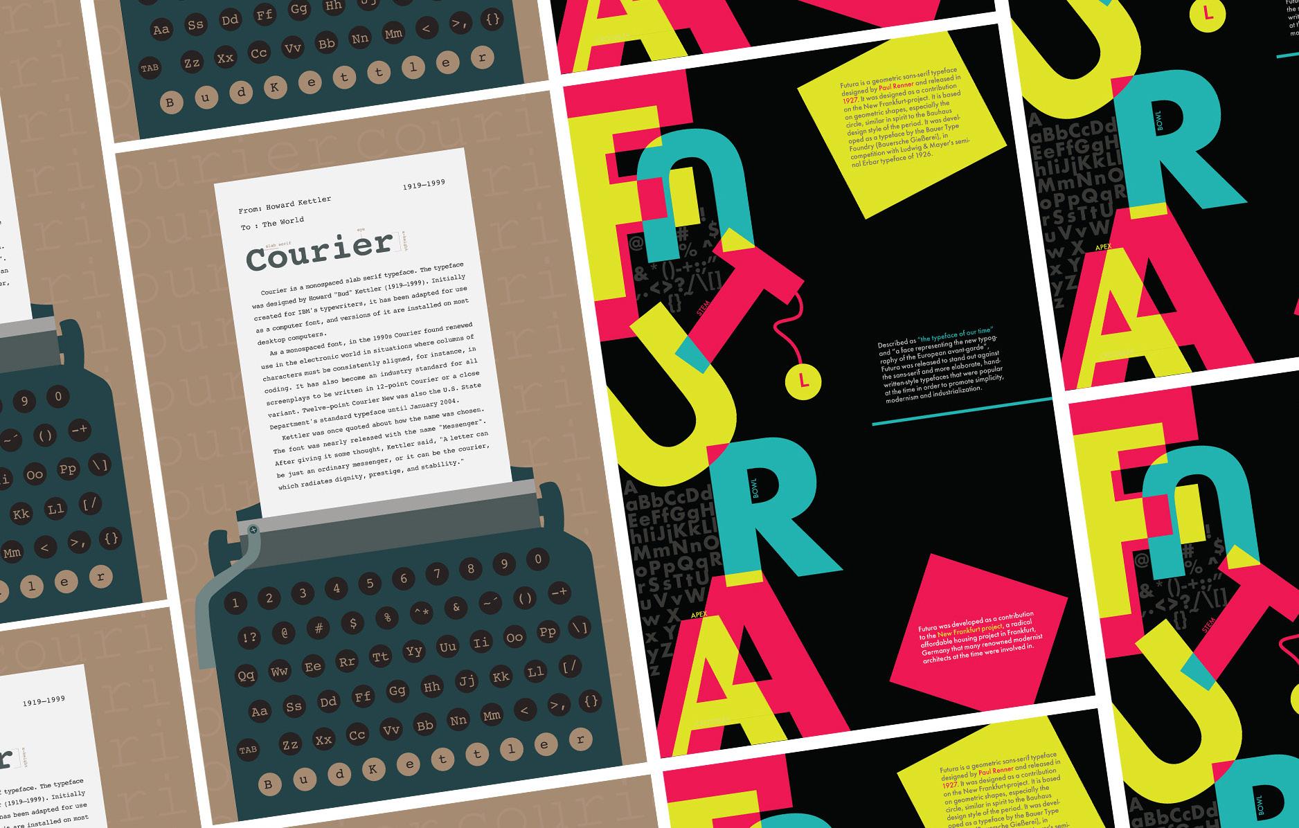 This typography design project aims to inform readers and emphasize the versatility of the typefaces Futura and Courier. The designs are inspired by each typeface’s history and were created to be intentionally contrasting.