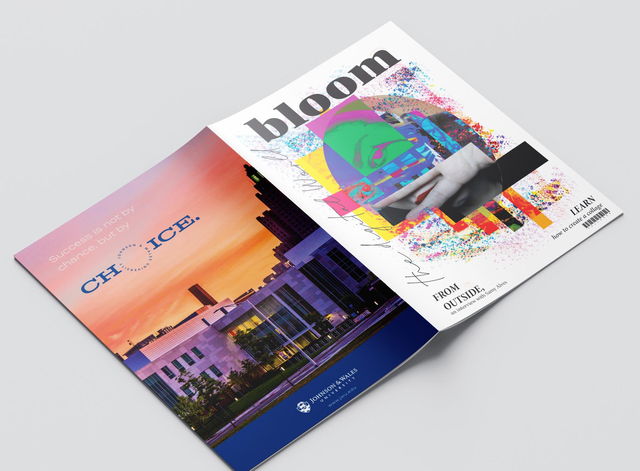 Bloom Minizine is an eight-page magazine designed for anyone with a passion for graphic design. This mini-magazine features an article, an interview, a creative/artistic piece, and a Johnson & Wales print advertisement