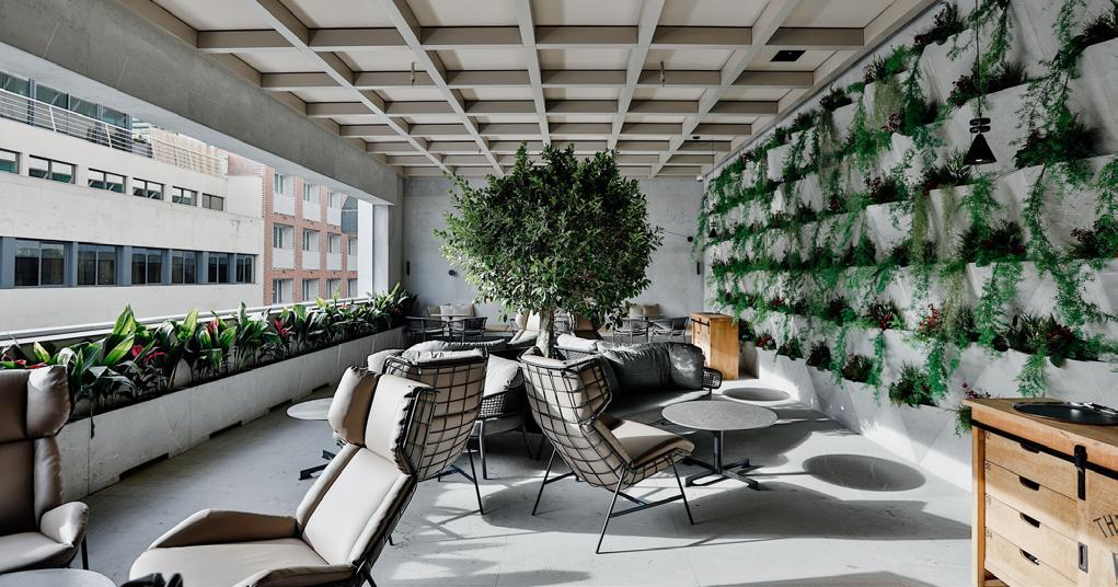 _ VISTA SOBRE A CIDADE _ SKY POOL LOUNGECom paredes verticais verdes naturais e áreas de estar íntimas com um piano ao lado, o BE EPIC Bar foi concebida tanto para trabalhar como para relaxar. Na extensão do bar, um jardim urbano.