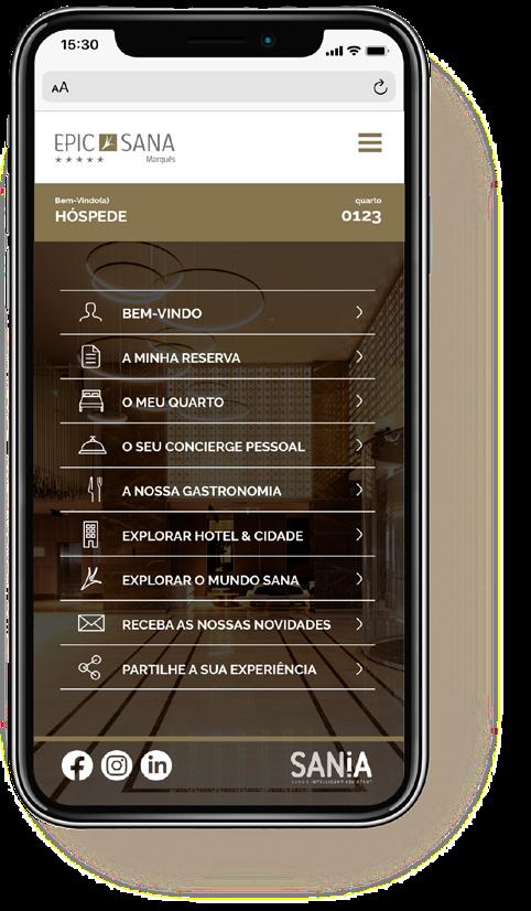 Eu sou a SAN.IA, a sua Intelligent Assistant nos hotéis SANA. Venho dar-lhe as boas-vindas ao EPIC SANA Marquês e colocar todos os serviços do hotel nas suas mãos.