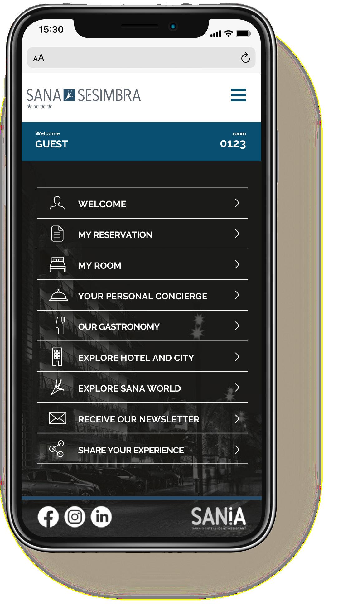 I am SAN.IA, your Intelligent Assistant at SANA Hotels. I am here to welcome you to SANA Sesimbra and put all the services of the hotel in your hands.