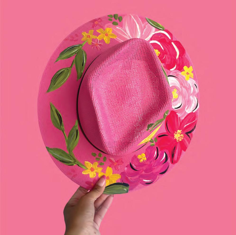 wasn’t good at it, honestly, but I started improving.” The Mexico native who grew up in San Antonio took a job as a daycare teacher after graduation and continued painting on the side, honing her signa ture brightly colored owers. COVID shut downs gave her time to begin taking more orders and after completing a hat that was requested by an Instagram follower, Gon zalez found her best-selling item. She now runs her Simply Mexicana business full time and specializes in hand-painted straw and suede hats imported from Mexico.