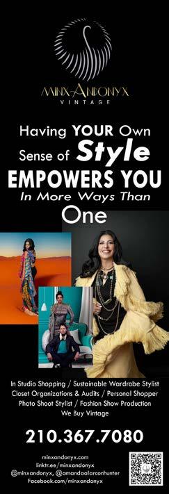 Enterprises (Publisher). Reproduction in any manner in whole or part is prohibited without the express written consent of the Publisher. Material contained herein does not necessarily reflect the opinion of the publisher or its staff. 78209 MAGAZINE reserves the right to edit all materials for clarity and space and assumes no responsibility for accuracy, errors or omissions. 78209 MAGAZINE does not knowingly accept false or misleading advertisements or editorial, nor does the Publisher assume responsibility should such advertising or editorial appear. Articles and photographs are welcome and may be submitted to our offices to be used subject to the discretion and review of the Publisher. All real estate advertising is subject to the Federal Fair Housing Act of 1968, which makes it illegal to advertise “any preference limitation or discrimination based on race, color, religion, sex, handicap, familial status or national origin, or an intention to make such preference, limitation or discrimination.” Printed in the U.S.A.