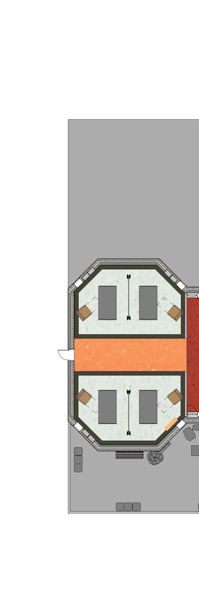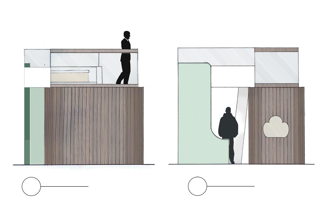 The overall layout of my Peid-a-Terre pod creates a asymmetrical design. The volumes in my design creates a contrast between the rest of the apartment and the gallery space. The pod uses natural materials; playing with the sustainable design.