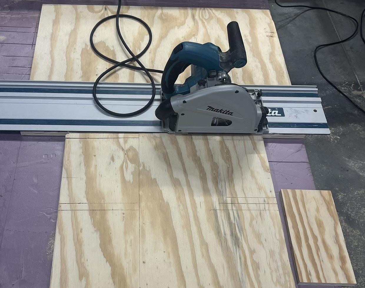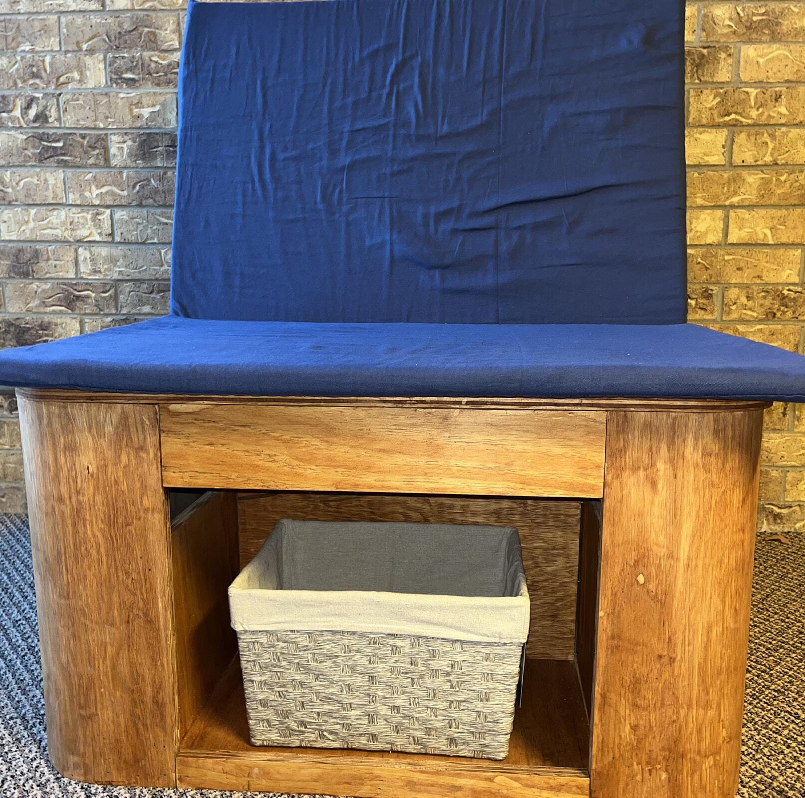 A self made furniture piece made from wood.