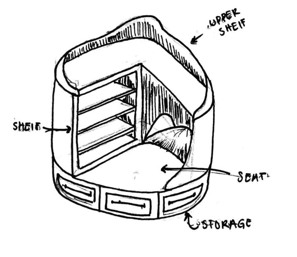 This project overall helped me tackle a vast majority of carpentry things that I was not fully knowledgeable about. I was able to create a chair/lounge chair that was both innovative and functional. Although it was hard to choose what I wanted to create for my design, I finally settled on a chair that had storage. This led me to combine various storage options, such as shelves, drawers, and bookcases. After many iterations, I landed on a furniture piece that would have shelves on the back that serve as a back rest and a base that has a storage opening. It was a mix of ideas in one, making it a multifunctional furniture piece.