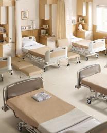 : Hospital beds and visitor features for comfort, accommodating various users.