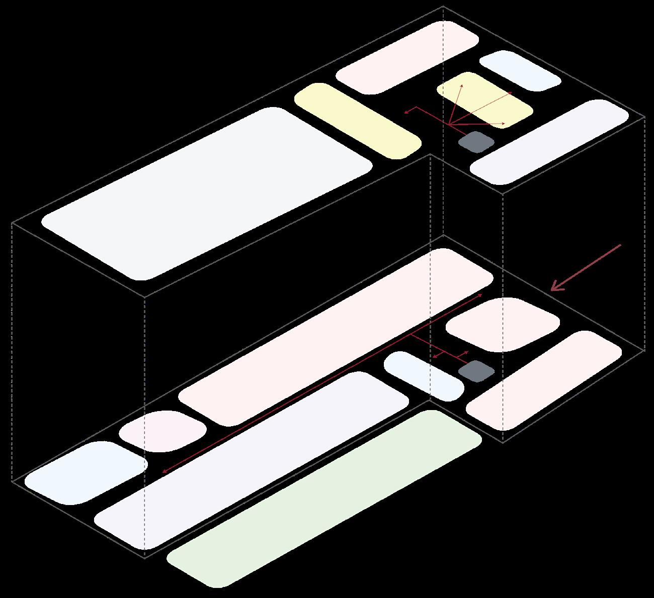 Defined zones or spaces that give the user different views and spaces during it use.