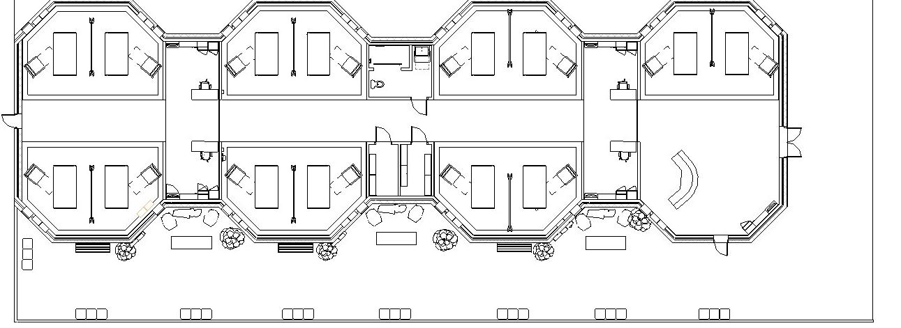 Decentralized Nursing Stations : Nursing stations are placed between bays for easy staff access and patient visibility, reducing walking distances for charting and supplies, which helps minimize staff burnout.
