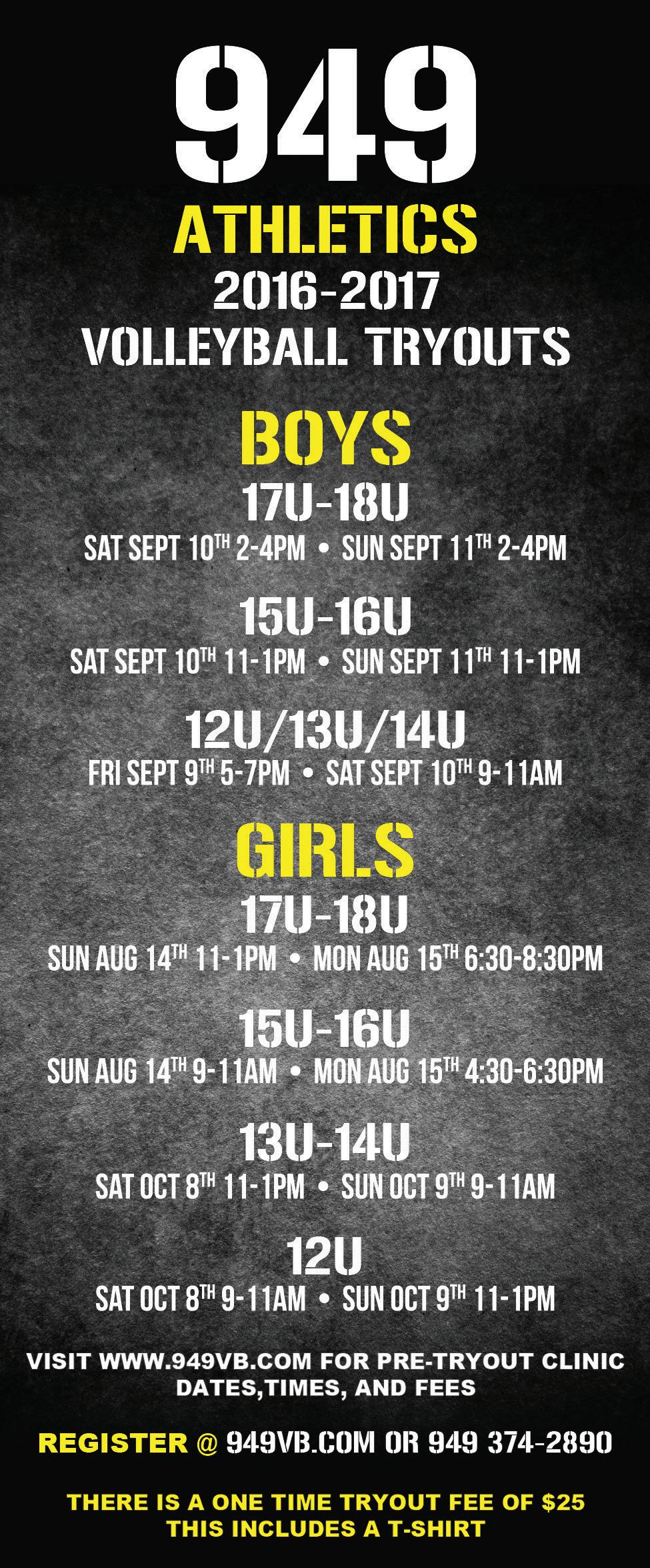 WE WANT TO RUN YOUR SCORES, RESULTS AND ANNOUNCEMENTS IN “SCOREBOARD.” E-mail sports@sanclementetimes.com, fax 949.388.9977, mail or drop off the information to us at 34932 Calle del Sol, Capistrano Beach, CA 92624 by each Monday at 5 p.m.