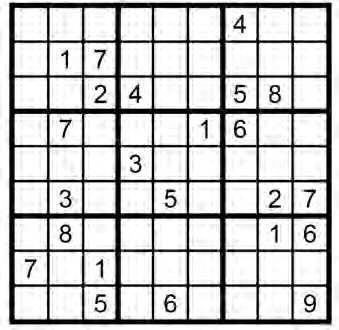 Each Sudoku puzzle consists of a 9x9 grid that has been subdivided into nine smaller grids of 3x3 squares. To solve the puzzle, each row, column and box must contain each of the numbers 1 to 9. Puzzles come in three grades: easy, medium and difficult. Level: Medium