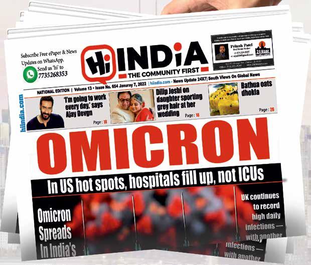 PUBLISHER- MANAGING EDITOR Hemant Brahmbhaatt hemant@hiindiaweekly.com (773)552-6083
