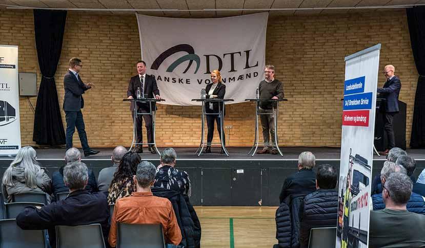 Vognmandens Dag i Vestjylland havde prominent besøg. Således var både transportminister Thomas Danielsen (V) og Inger Støjberg (DD) med i en paneldebat på dagen. Her er de to flankeret af ordstyrer, politisk redaktør Klaus Knudsen Pedersen fra TV Midtvest (på venstre side), og til højre byrådsmedlem Karsten Filsø (SF) fra Holstebro Kommune samt vognmand Carsten Dyreborg fra Vestjyllands Vognmandsforening og DTL’s hovedbestyrelse.