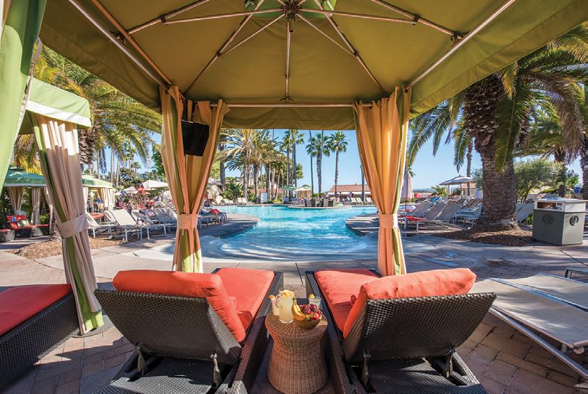 pool, a toddler wading pool, and a continuous schedule of fun, yearround activities for kids and adults; Paradise Point Resort & Spa offers tranquil bungalowstyle rooms with garden or waterfront views; the Polynesian-themed Catamaran Resort & Spa boasts koi ponds, exotic birds and a summertime Sunset Luau—all hits with guests; the Bahia Resort Hotel is home to the Bahia Belle sternwheeler (sunset cruise across the bay, anyone?) and a “hidden” harbor seal habitat.