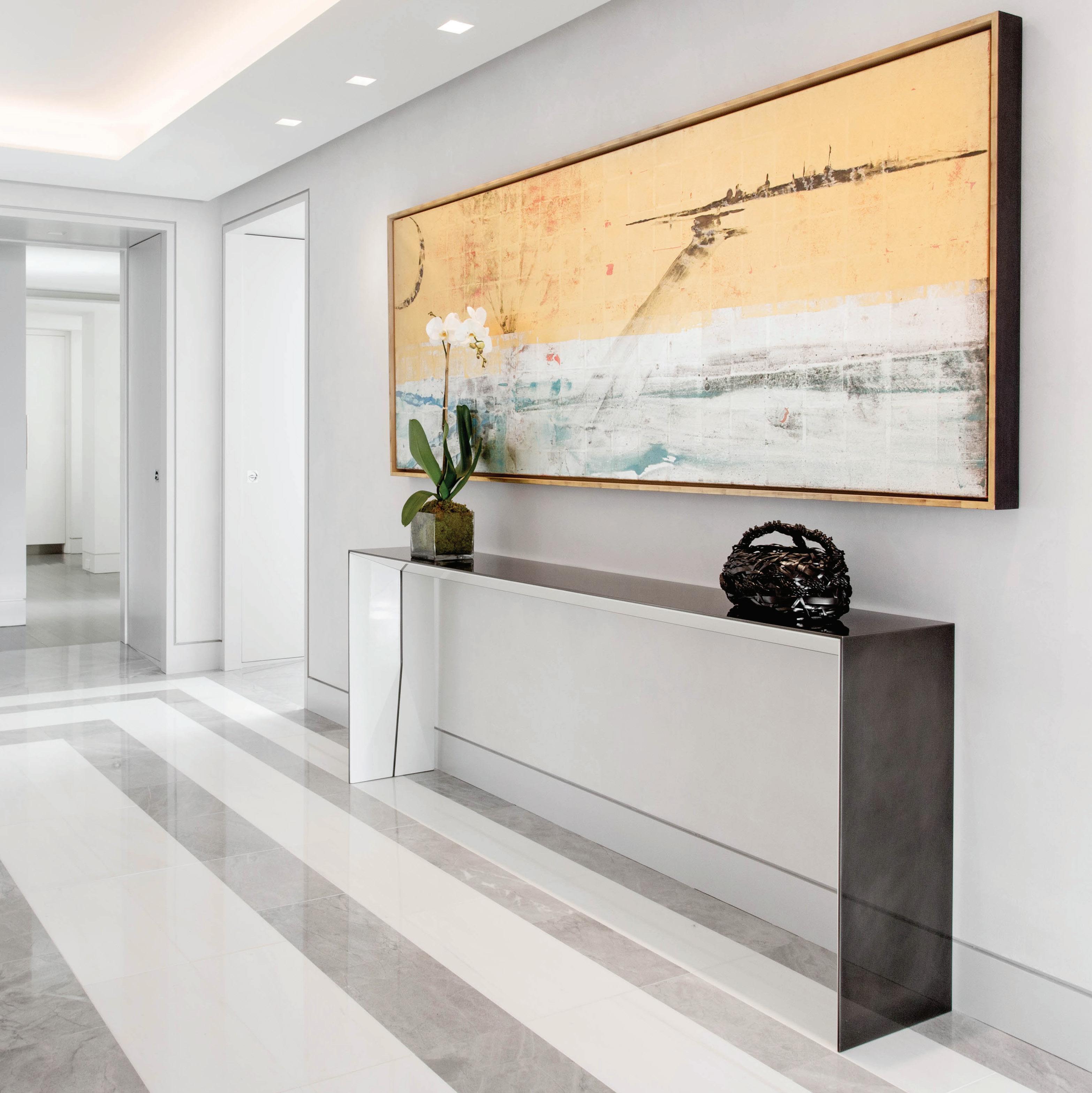 Exactingly crafted wall finishes provide a flawless backdrop to the artwork collection throughout the apartment.