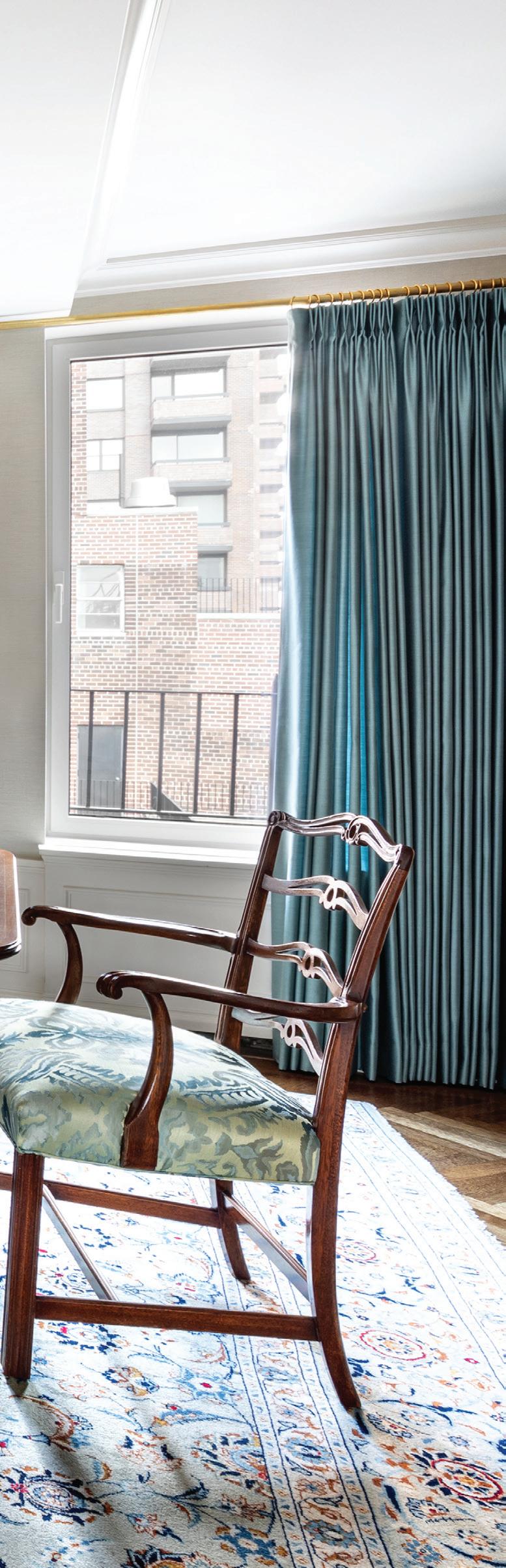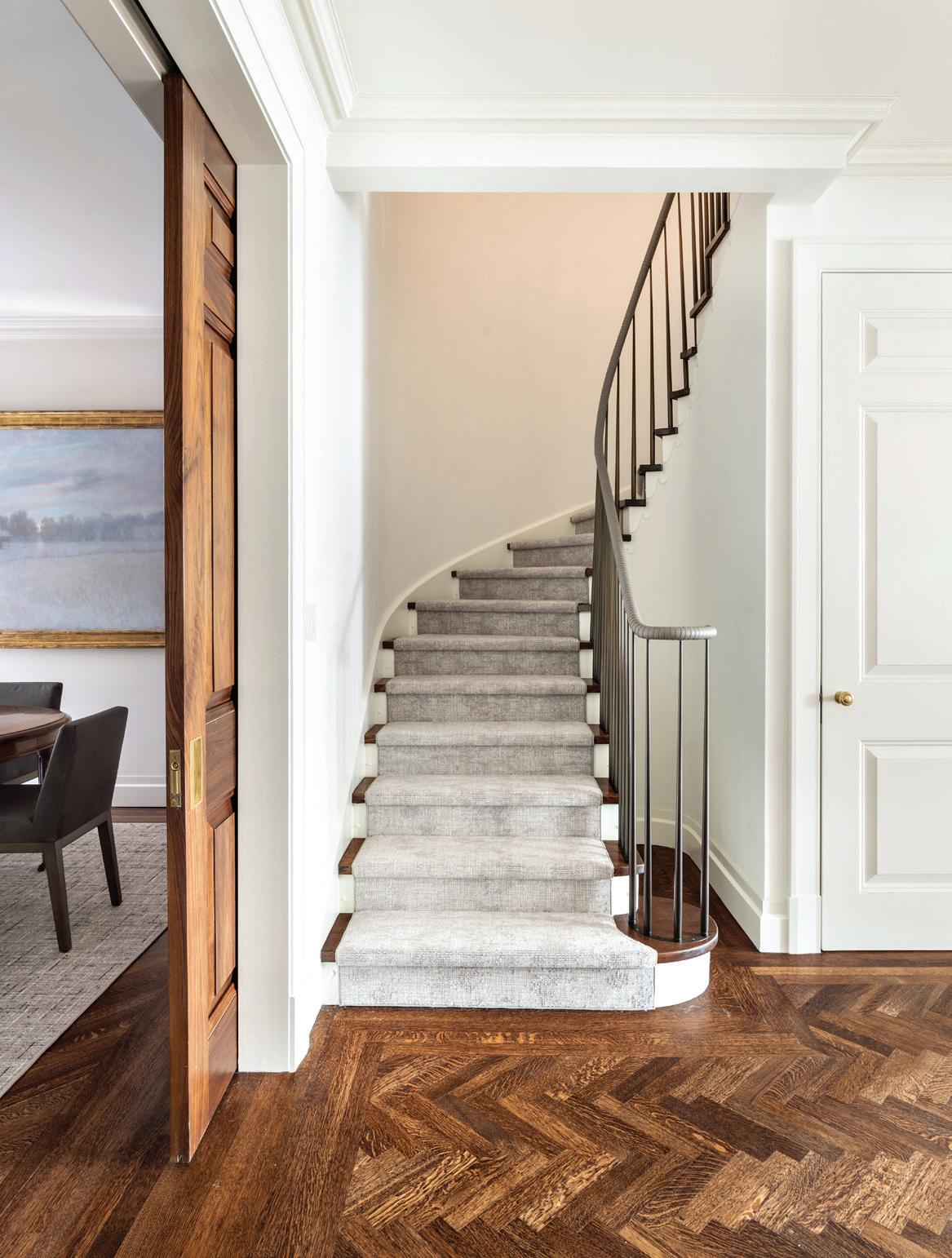 This duplex pied-à-terre in a highly sought after Rosario Candela building on Fifth Avenue hadn’t been updated in decades and required a significant renovation to suit the owner’s empty nest lifestyle. Two of the bedrooms overlooking Central Park were combined into an expansive master suite with his-and-her bathrooms and generous closets.