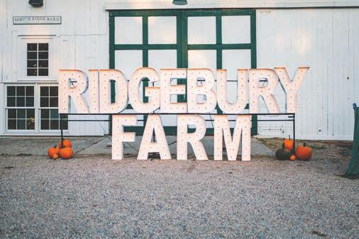 484RidgeburyRd,RidgefieldCT,06877 203-801-5254|info@ridgeburyfarm.com www.ridgeburyfarm.com From intimate arm-to-table dinners to large edding receptions on their breathtaking 56 acres, Ridgebur Farm o fers a spectacular setting ith flexible options or our special da . portion o the proceeds rom all e ents ill bene it our therapeutic riding programs.