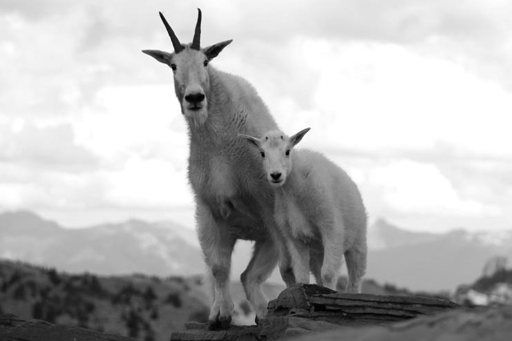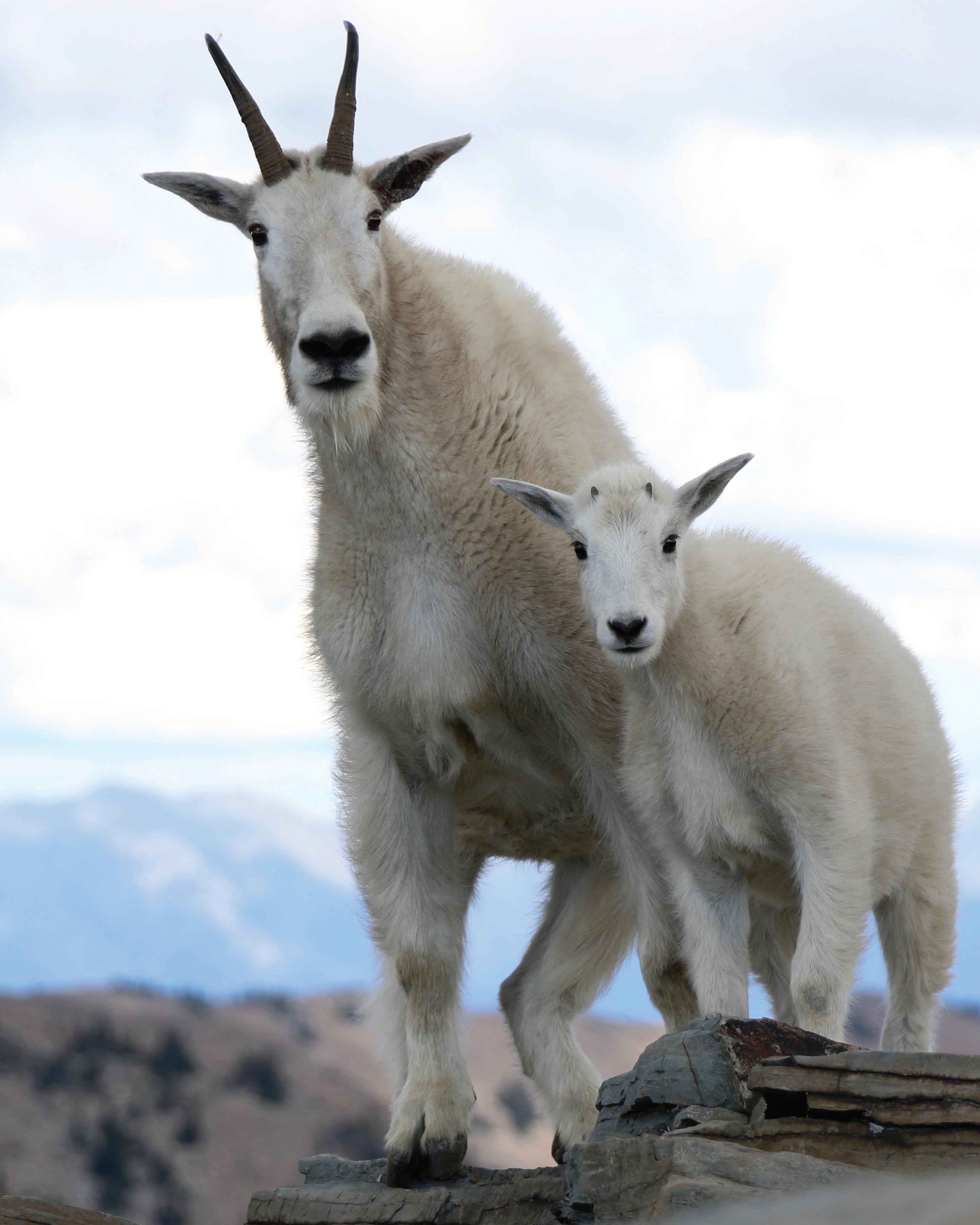 Mountain goats have been on the collective minds of the Friends of Scotchman Peaks Wilderness for several years now. At first, it was because the goats had become somewhat problematic and habituated to panhandlers on Scotchman Peak Trail #65. More recently, they have been the catalyst for a big effort by FSPW volunteers and staff to educate visitors to the proposed Scotchman Peaks Wilderness about the wisdom of keeping their distance from all wild animals, and goats in particular. That said, it should be noted here that Leslie Kiebert’s winning photo of a mountain goat nanny and kid in the 2016 FSPW photo contest was taken with a telephoto lens.
