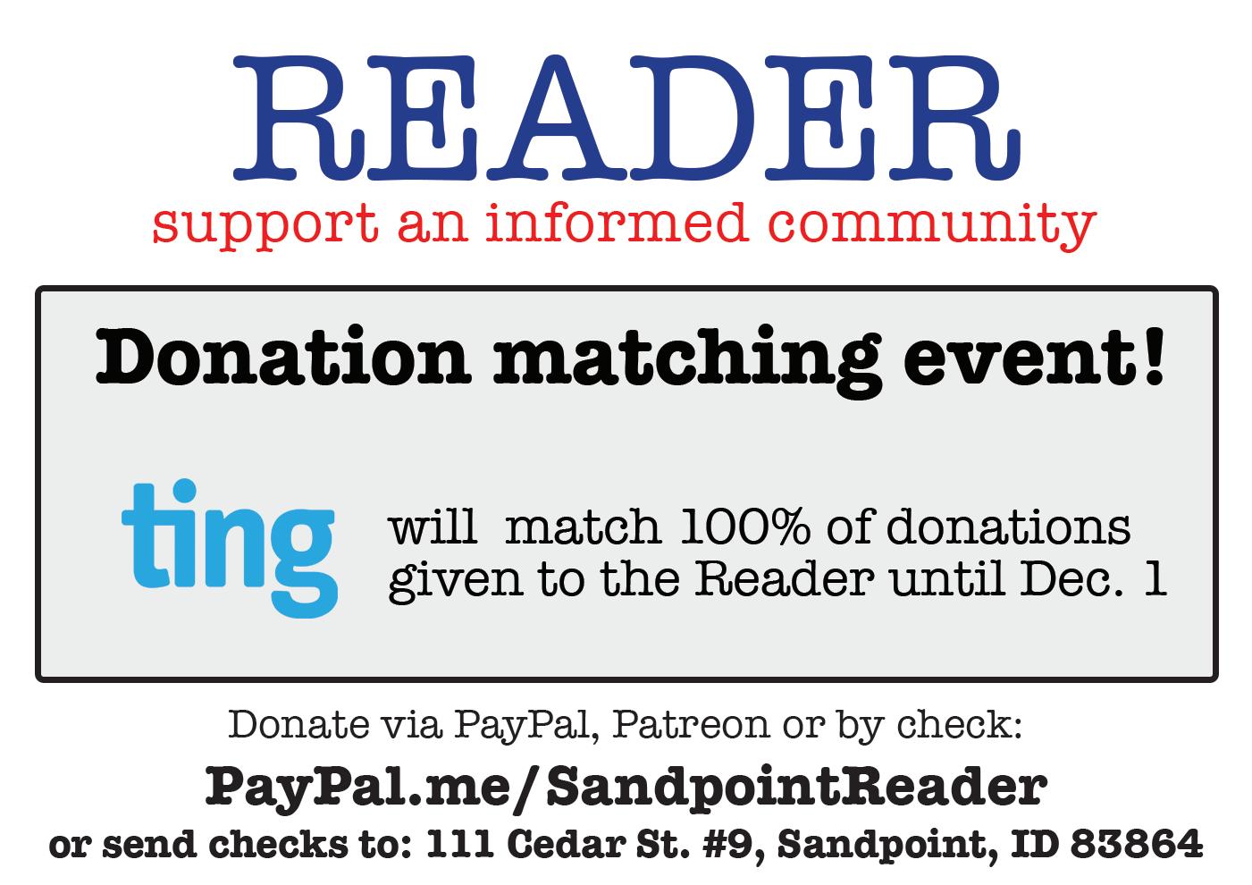 Check us out on the web at: www.sandpointreader.com Like us on Facebook.