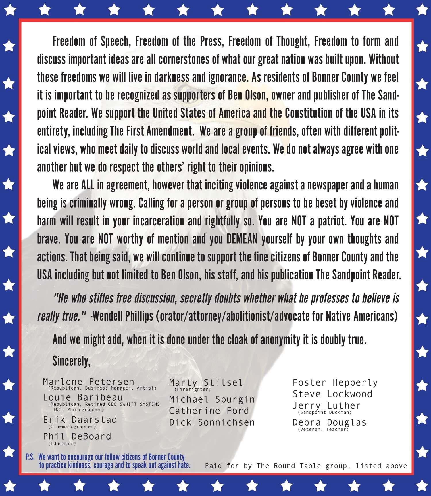 Email letters to: letters@sandpointreader.com