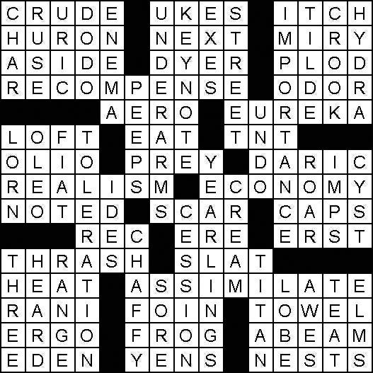 6. Hawaiian strings 10. Skin irritation 14. A Great Lake 15. Following 16. Like a bog 17. Comment to the audience
