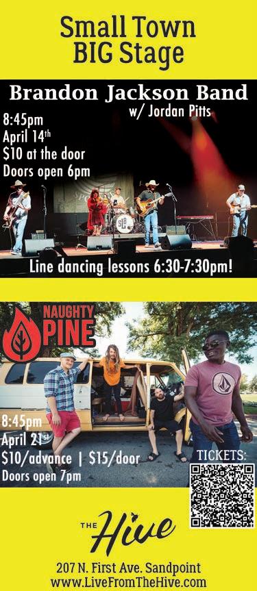 Line dancing lessons 6:30-7:30 p.m., opener Jordan Pitts 7:308:30 p.m., main show at 8:45 p.m.; $10; 21+. The Hive, 207 N. First Ave., 208-920-9039, beeswaxsystems.com/THEHIVE. Listen at brandonjacksonband.com. livefromthehive.com.