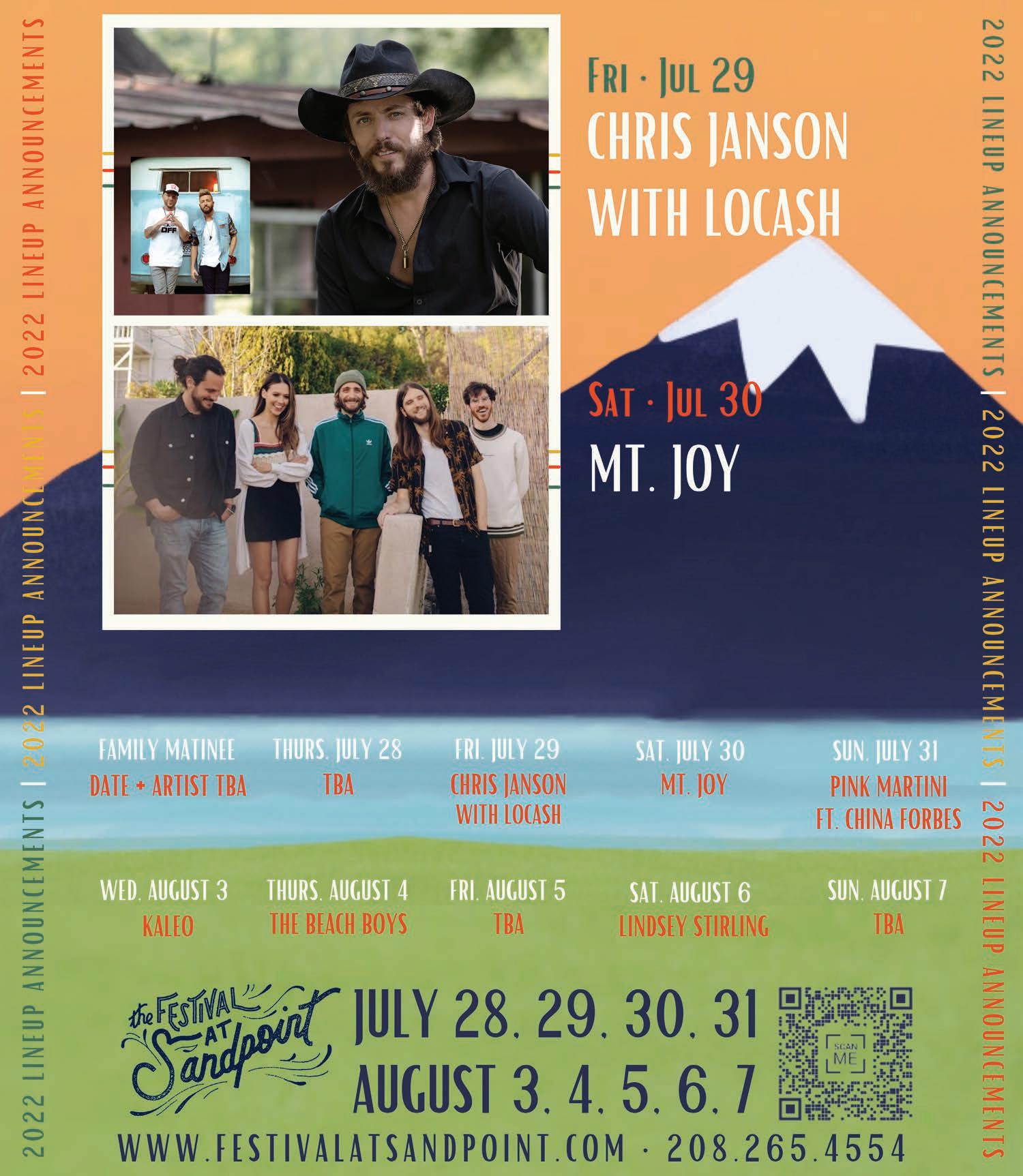 For more information about these or other shows at the Festival at Sandpoint, visit festivalatsandpoint.com or email info@festivalatsandpoint.com.