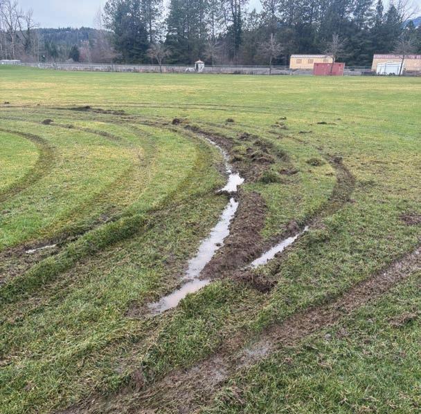 Muddy tire tracks in Great Northern Field. Photo courtesy of city of Sandpoint