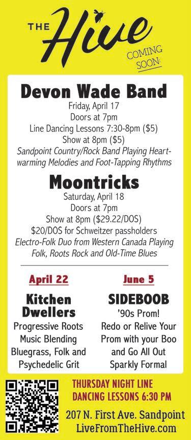 Moontricks will play The Hive at 8 p.m. on Saturday, April 18. Schweitzer passholders can enter for $20 the day of the show. Buy tickets online at livefromthehive.com.