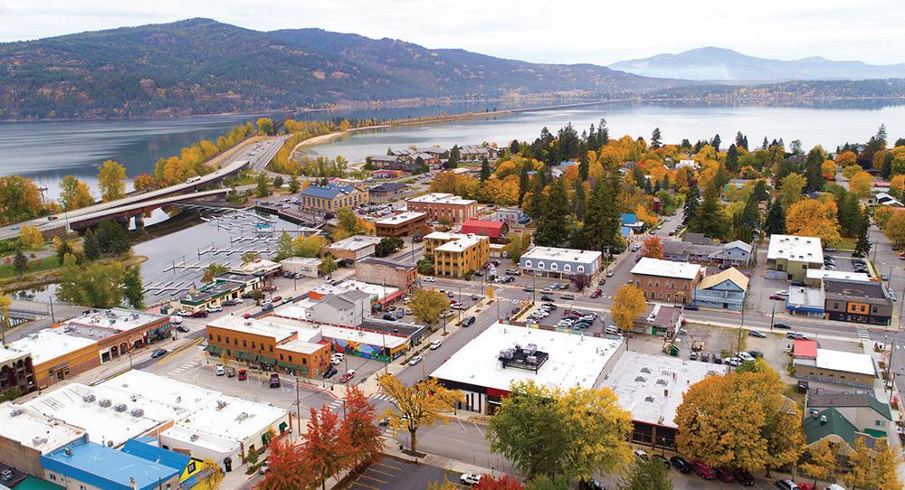 An aerial photograph of downtown Sandpoint in fall. Courtesy William Greenway.