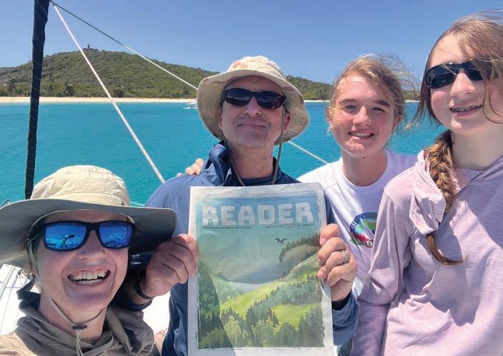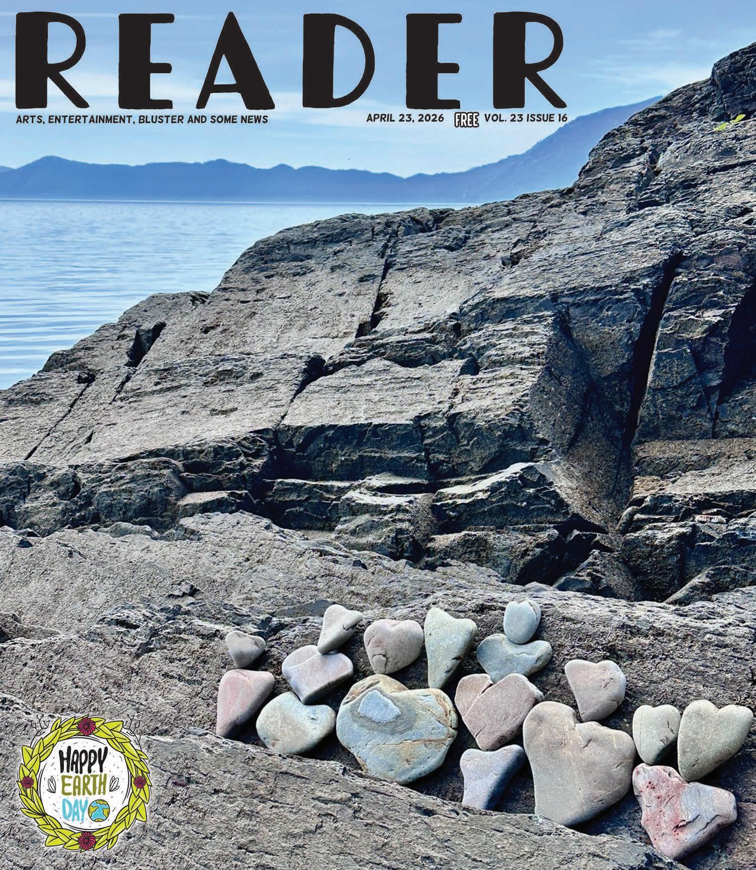 The Reader is printed on recycled paper using soy-based ink. Leftover copies are collected and recycled weekly, or burned in bonfires to appease the gods of journalism. For back issues, contact the publisher. Free to all, limit two per person, please.