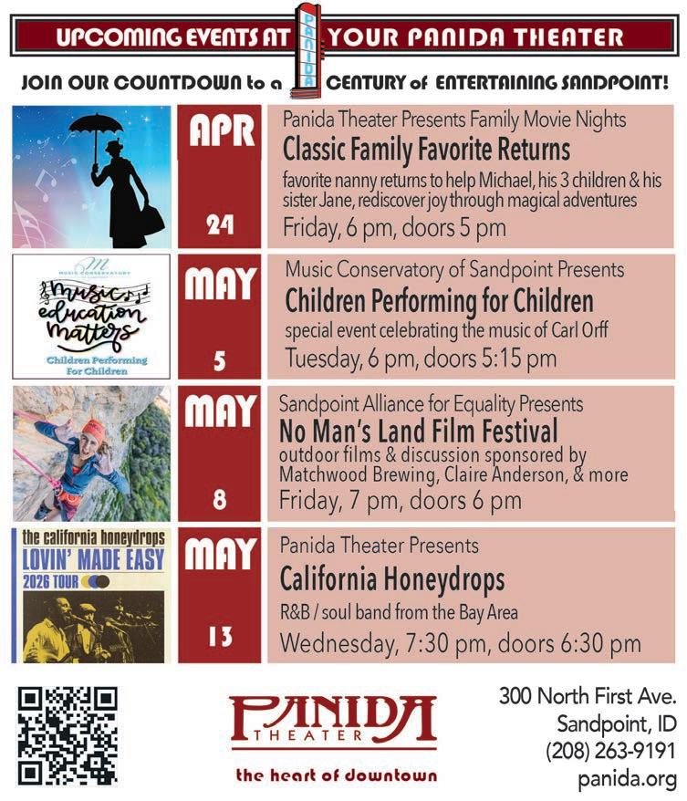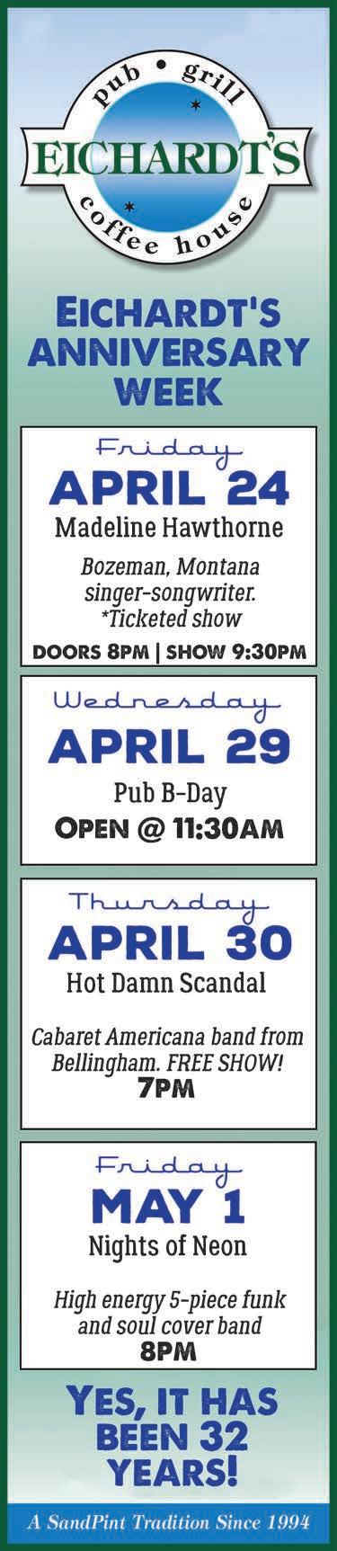 Finally, the anniversary week wraps up at 8 p.m. on Friday, May 1 with a rousing performance by Sandpoint’s own Nights of Neon.
