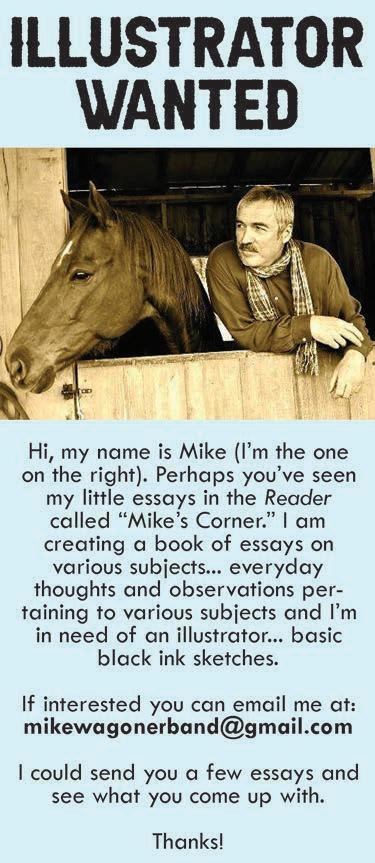 We hope to provide a quality alternative by offering honest, in-depth reporting that reflects the intelligence and interests of our diverse and growing community. The Reader is printed on recycled paper using soy-based ink. Leftover copies are collected and recycled weekly, or burned in massive bonfires to appease the gods of journalism. Free to all, limit two copies per person.