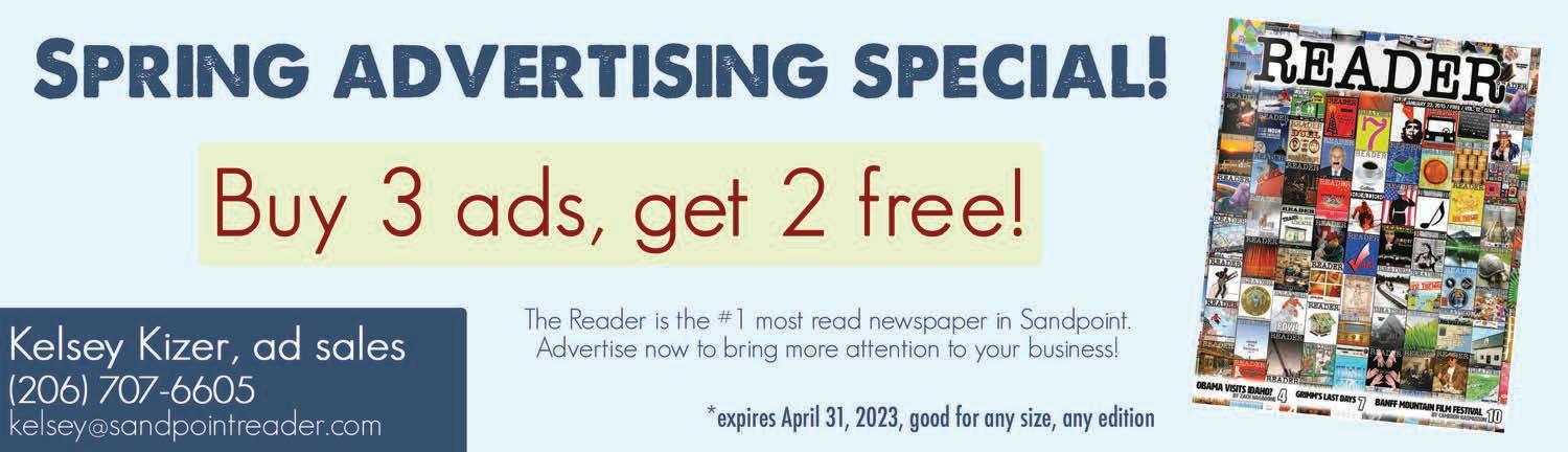 The Sandpoint Reader is a weekly publication owned and operated by Ben Olson and Keokee. It is devoted to the arts, entertainment, politics and lifestyle in and around Sandpoint, Idaho. We hope to provide a quality alternative by offering honest, in-depth reporting that reflects the intelligence and interests of our diverse and growing community. The Reader is printed on recycled paper using soy-based ink. Leftover copies are collected and recycled weekly, or burned in massive bonfires to appease the gods of journalism. Free to all, limit two copies per person
