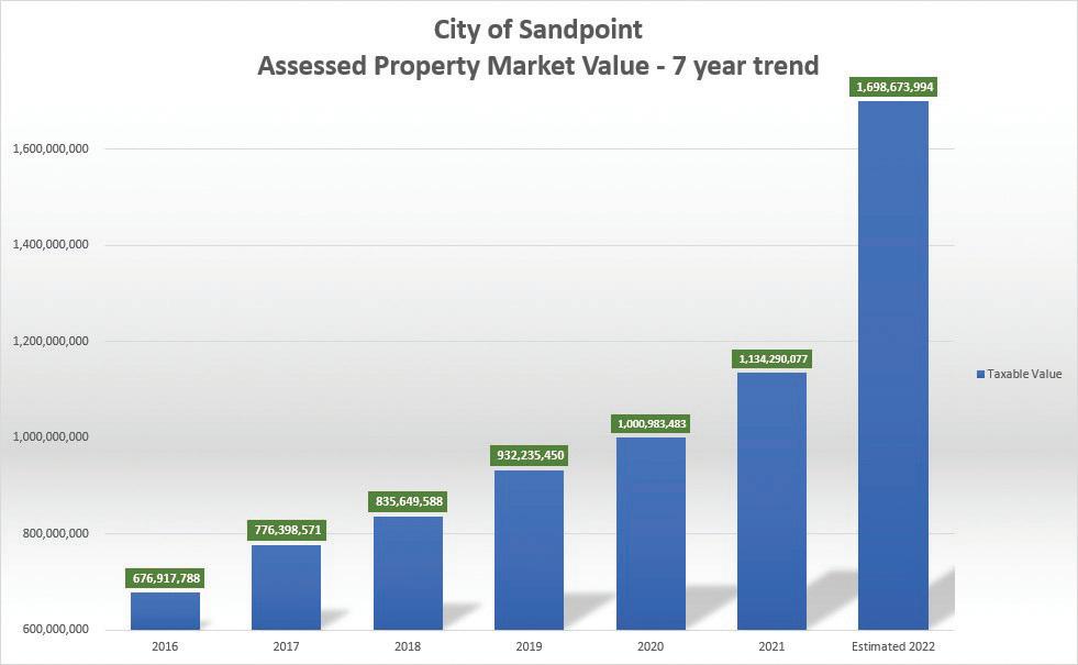 “This year, our assessed overall property market value in Sandpoint went up by 50%,” she said, noting that recent year-over-year increases have tended to be within the 20% range.