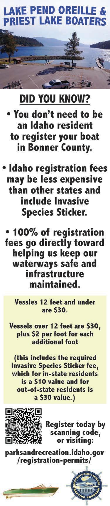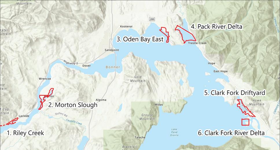The Corps will apply herbicides at Riley Creek, Morton Slough, Oden Bay, Pack River Delta and the Clark Fork Driftyard and Clark Fork Delta. For real-time treatment zone updates, go to invasivespecies.idaho.gov/ treatment-plans and select “Treatment Map.”