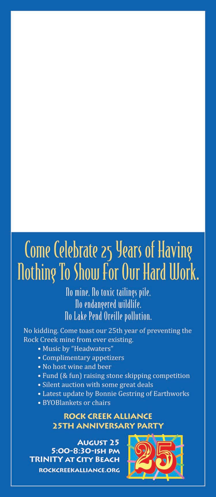 As our cover photo points out, fire season is not over in North Idaho. Let’s be thankful for the reprieve we’ve had so far, though thunder and lightning is in the forecast. I remember a few years back when Sandpoint had the nation’s worst air quality over Labor Day weekend. Someone shared a picture of crossing the Long Bridge and you could barely see the car in front of them. There are currently no fire restrictions, so please take special care while recreating in the backcountry. Make sure to drown all campfires when leaving them and refrain from tossing cigarette butts outside your vehicles.