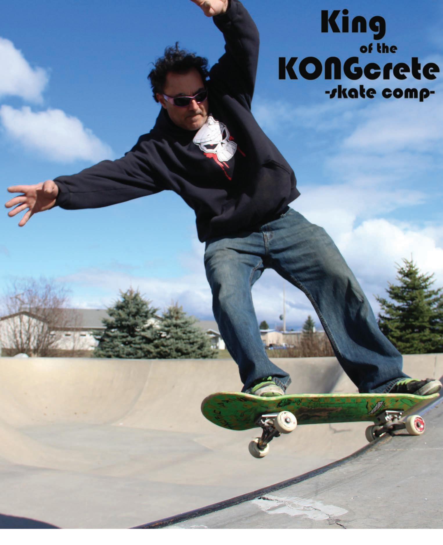This week’s cover features a photograph taken by Ben Olson of local skater Matt Splat at the Concrete Lake Skate Park at Traver’s Field. Splat was instrumental in establishing the skate park, and was out practicing his grinds while the photo was taken.