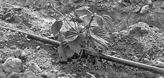 Duration of watering time depends on the soil—and the crop. In an “average” loam, one inch of irrigation will penetrate 12 inches. In a sandy soil, penetration will be deeper, and in a clay soil, not as deep. For established shrubs in the average loam, a thorough, deep irrigation once per week should be adequate during the growing season. Since clay soils hold water longer, care must be taken not to over water, which will exclude necessary oxygen from the soil profile.